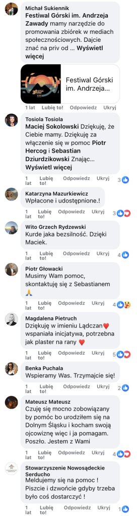 Pomoc od firm – transporty jedzenia, odzieży, zabawek, itp. – proszę uzgadniać z Sebastianem Dziurdzikowskim 696 403 230