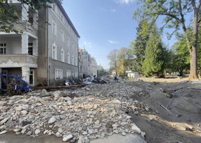 Brak opadów pozwolił zobaczyć co zostało z Lądka-Zdroju. W pasie rzeki – zostało niewiele.