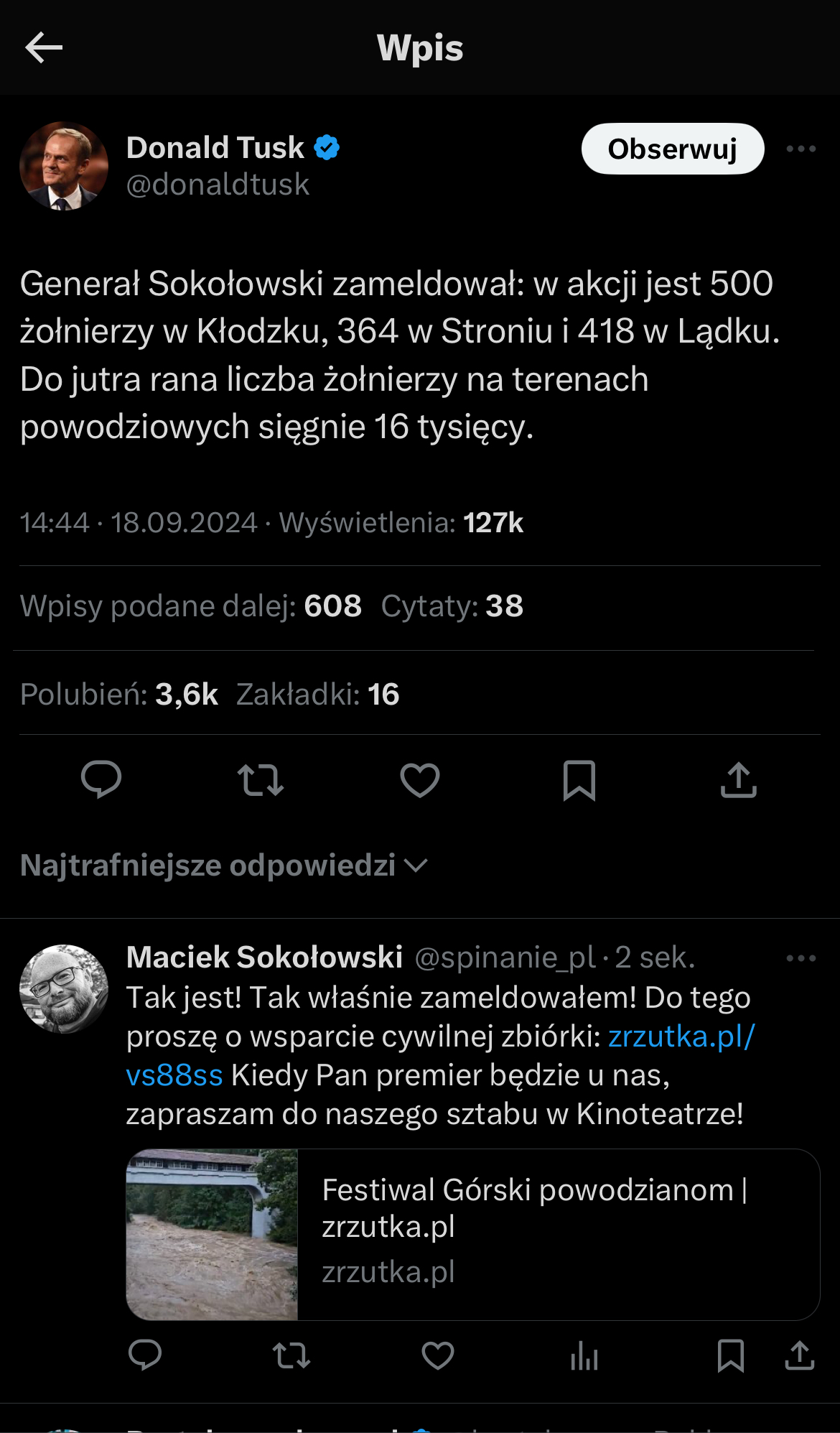 Lądek ma ogromne potrzeby infrastrukturalne – potrzebne będą domy dla powodzian, odbudować trzeba będzie oczyszczalnię ścieków i parę innych obiektów. Tego się już darami nie da załatwić. Jeżeli możecie – wspierajcie zbiórki. Nasza jest tutaj – https://zrzutka.pl/vs88ss. jutro uruchomimy dla rodaków z zagranicy.