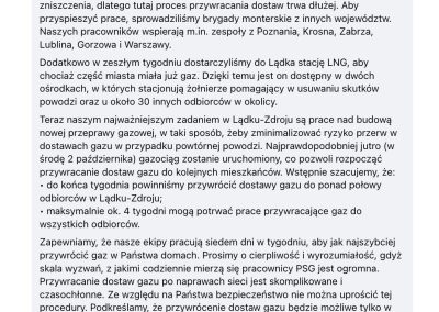 Na razie tylko na ulicy Bema, ale pojawił się też harmonogram wznowienia dostaw. Pod naszym wczorajszym postem pojawiły się wyjaśnienia od rzecznika Polskich Sieci Gazowych a pod ruinami Barbary kilkudziesięciu gazowników. Może to nasz post, może TVN24, które rano się z nami kontaktowało a może zwykły zbieg okoliczności. W każdym razie – widać nadzieję na gaz.