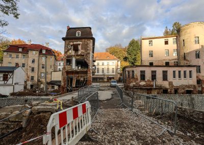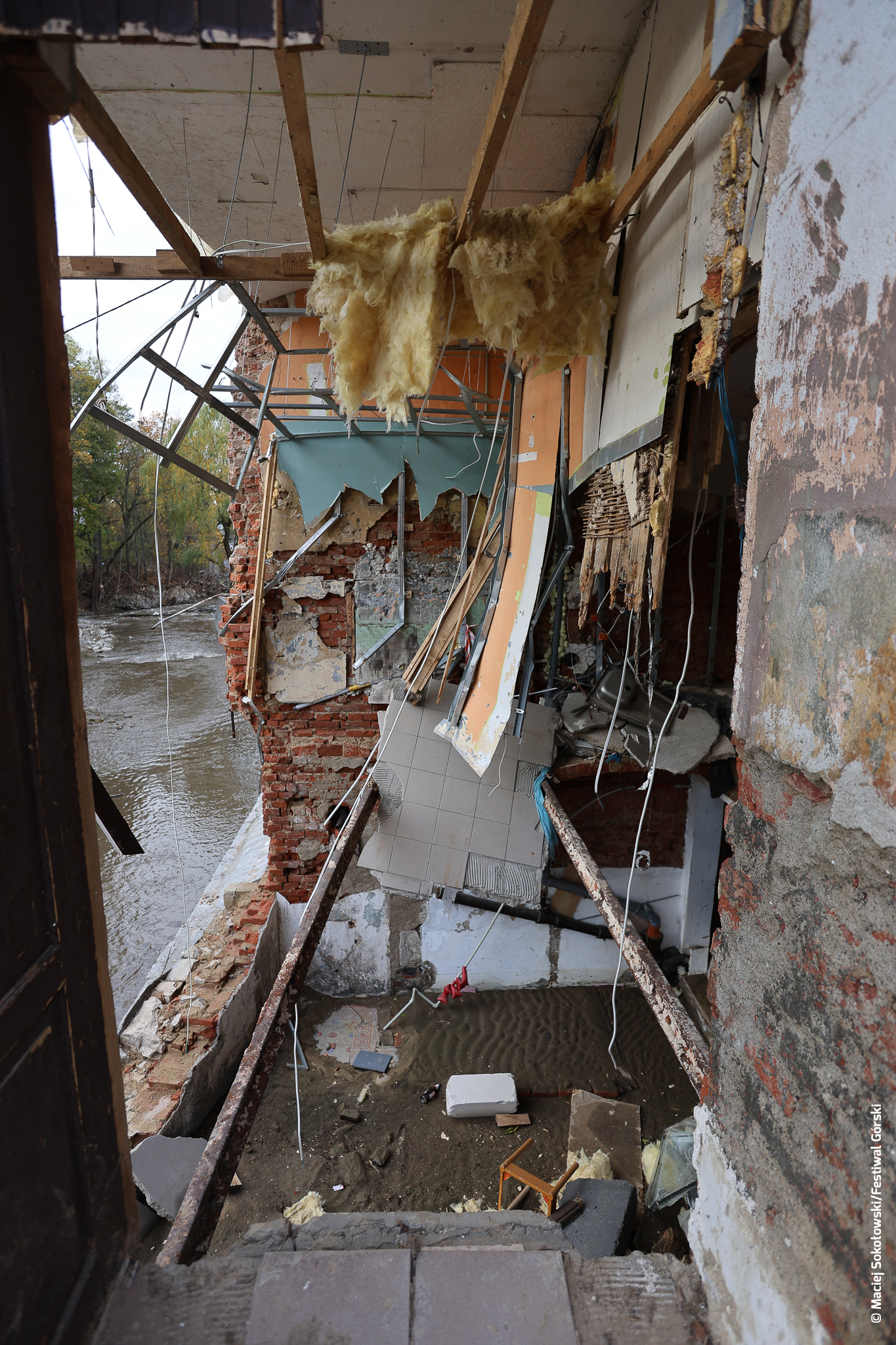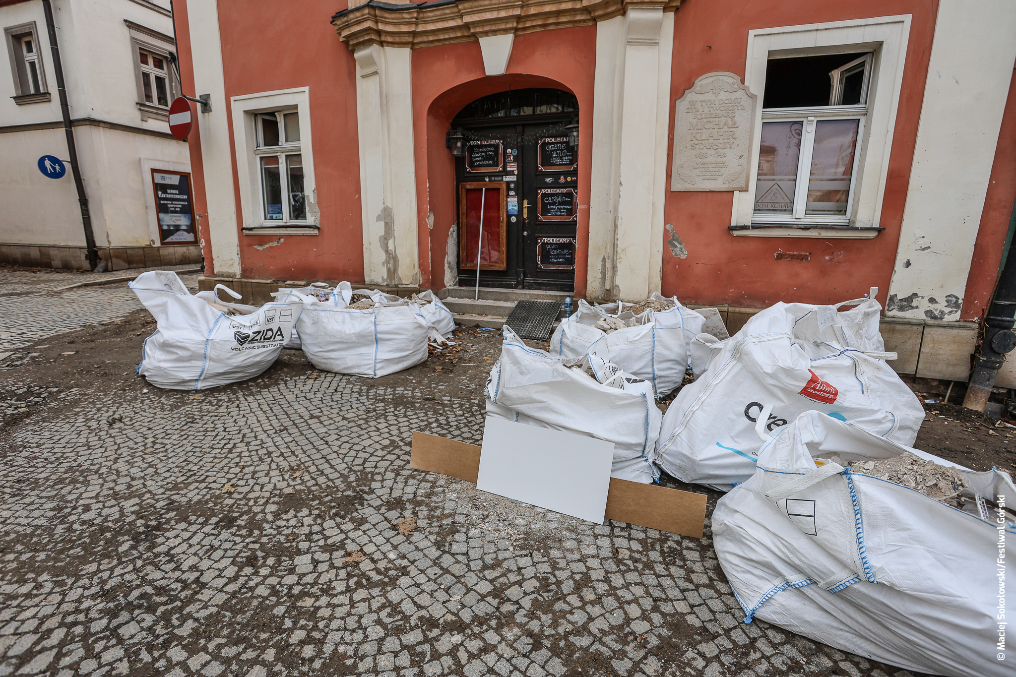 sobie najbardziej ikoniczny obiekt tej powodzi w Lądku – kamienica Kościuszki 44 – bez jednej ściany i podłogi na parterze, bez ekspertyz i pomysłu – co dalej. Za to – z kredytem na remont elewacji, który był w trakcie – woda zmyła stojące przy budynku rusztowanie.