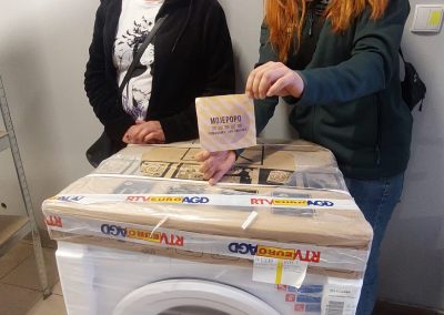 Dzięki dużej współpracy z Play , zbiórkom Maciej Szabatowski, Łódzka Kolej Aglomeracyjna i innym darczyńcom możemy zaopatrywać kolejne domy i mieszkania w niezbędny sprzęt AGD. Meble mamy na razie używane – dzięki Scania Polska za szereg stołów! Mamy materace, trochę innych sprzętów i w Klubie Kuracjusza (kto pamięta, że tam w czasie Festiwalu była Sakwa Stage?) niedługo uruchomimy społeczny salon meblowy. Ciągle liczymy na odzew z IKEA, ale z każdą chwilą jakby mniej.