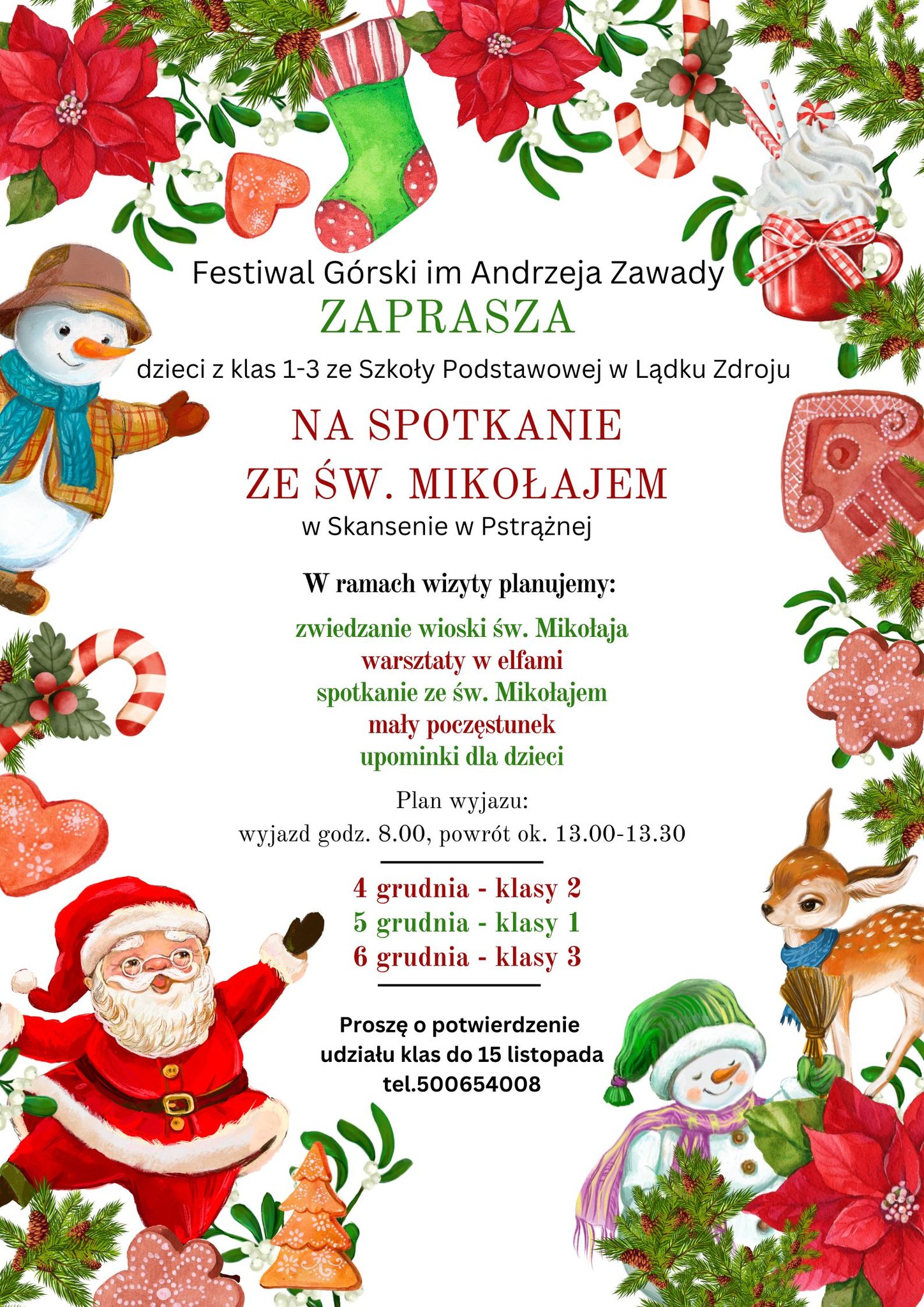 Zbliżają się Mikołajki. Zorganizujemy wszystkim dzieciom w wieku przedszkolnym i wczesnoszkolnym (klasy 1-3) zorganizować wycieczkę do biura św. Mikołaja w skansenie w Pstrążnej. Łącznie to będzie około 400 dzieci z całej gminy.