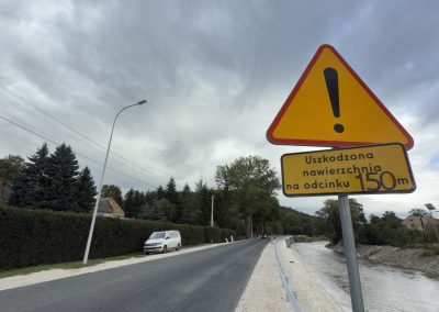 Jeżeli chodzi o drogi – w zasadzie dopiero przygotowują się do remontów. Z jaskółek zmian – zakończono odbudowę drogi w Ołdrzychowicach. Co prawda nieściągnięty znak mówi o 150 metrach uszkodzonej nawierzchni ale, jak to u nas bywa, prawda jest dokładnie odwrotna. To w tej chwili jedyne 150 metrów nieuszkodzonej, równej nawierzchni na trasie Żelazno – Stronie Śląskie. Ale już zapowiadany jest remont kapitalny właśnie tej drogi nr 392.